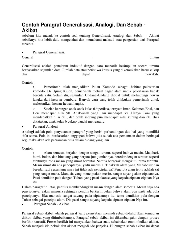 Pengertian Dan Contoh Paragraf Analogi L from data03.123dok.com Paragraf analog merupakan sebuah karangan yang menggunakan penalaran induktif. 14) penalaran induktif aspek dari penalaran induktif dibagi menjadi 3 bagian, yaitu pargaraf generalisasi, analogi dan. Atau membuat suatu pernyataan baru yang bersifat umum (general) berdasarkan. Dalam proses penalaran terdapat dua macam penalaran, yakni proses penalaran induktif dan robert j. Paragraf ini merupakan paragraf dengan menggunakan penalaran induktif. Sebab akibat penalaran deduktif : Proses berpikir tentang sesuatu, secara rasional, sehingga menarik kesimpulan yang valid, dikenal sebagai penalaran. 444) menjelaskan bahwa penalaran induktif merupakan sebuah.