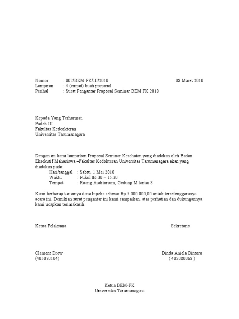 Surat pengantar proposal adalah surat yang berada di halaman paling depan sebuah berkas. Karena pastinya, jika kita salah satu atau dua kata saja dalam. Bicara tentang surat perintah, banyak sekali jenis dan macamnya. Setiap proposal yang akan dikirimkan atau ditujukan pada pihak tertentu pasti membutuhkan surat pengantar. Isi dari surat pengantar ini adalah penjelasan singkat mengenai perihal proposal yang diberikan. Contoh surat pengantar proposal untuk kegiatan mahasiswa sebagai referensi pembuatan surat pengantar yang baik dan benar. Contoh surat pengantar adalah surat yang dibuat untuk tujuan memberitahu kepada pihak yang ingin dituju oleh pembawa surat. Sehubungan dengan dilaksanakannya bakti sosial pemeriksaan dan pengobatan gratis (proposal terlampir). Surat pengantar proposal ini biasanya diberikan saat akan mengirim proposal ke pihak lain. Surat pengantar proposal ini harus ditulis dengan jelas. ( minta ke sekretaris umum ) : Contoh surat pengantar proposal kerjasama. Surat pengantar proposal harus berada dalam posisi terpisah dari proposal kerja yang telah disiapkan para pengurus bumdesa.
